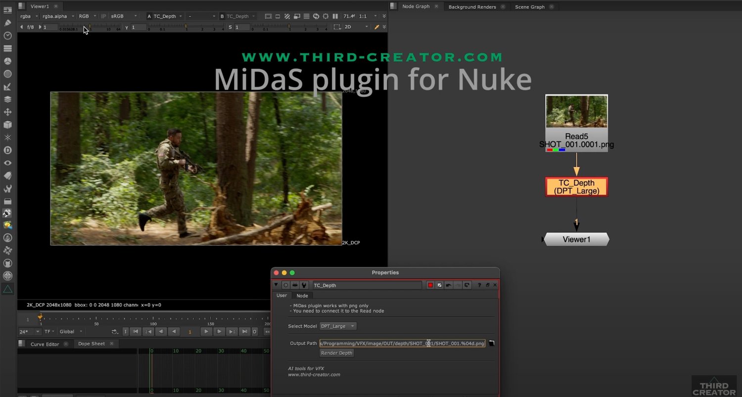 MiDaS TC_Depth Plugin allows you to generate depth maps directly inside Nuke, simplifying precomps and enhancing your creative process.